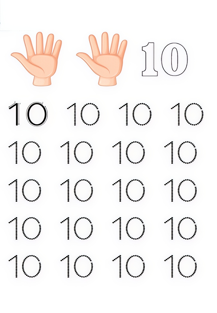 10 Rakamı Çalışma Sayfası Okul Öncesi 10 rakamı, iki ayrı sembolün (1 ve 0) yan yana gelmesiyle oluşur. Bu, tek haneli rakamlardan farklı olduğu için özel dikkat gerektirir.